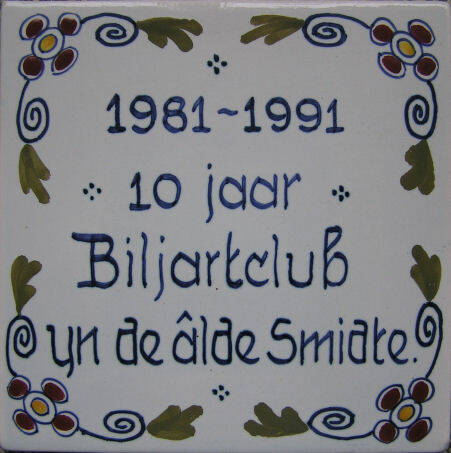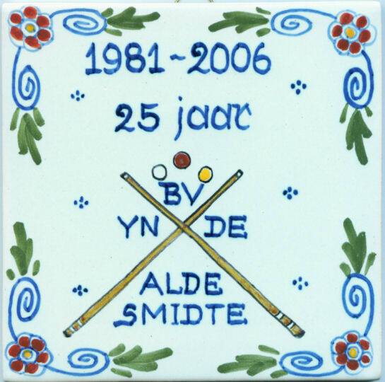 Bij het 25 jarig bestaan van bv Yn De Alde Smidte kregen Hans IJntema, Simon van der Meer, Willem Foekema en Ruurd Oosterkamp een tegel met hun naam aangeboden door de bv YDAS voor 25 jaar biljarten bij de vereniging.