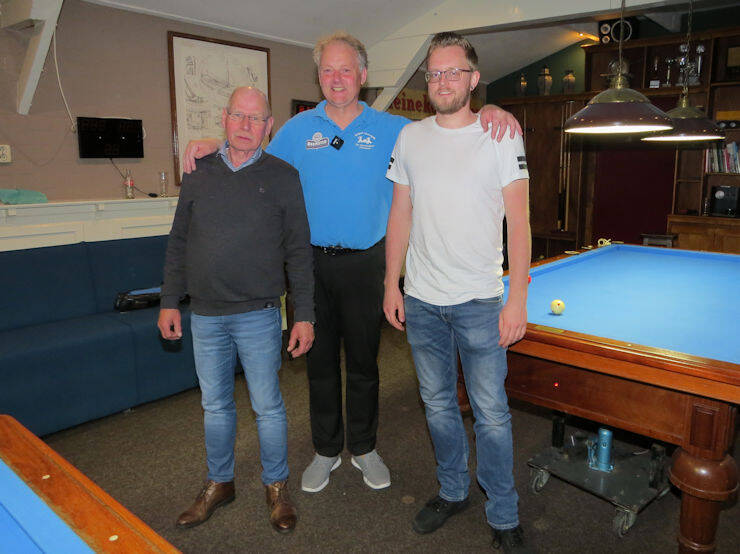 We hebben vrijdag 19-12-2025 een heel mooi toernooi gespeeld. Het toernooi om de Gouden Kerstbal is gewonnen door Robert den Bremer. Hij versloeg in de finale Peter Lammers. Nico Canrinus is derde geworden door John Kruis te verslaan. De mooiste carambole was van Reinold de Jong. Meine Bosma verraste vriend en vijand met een prachtige serie van 23. Er deden 12 leden mee en het was een gezellige avond. Geert Wind